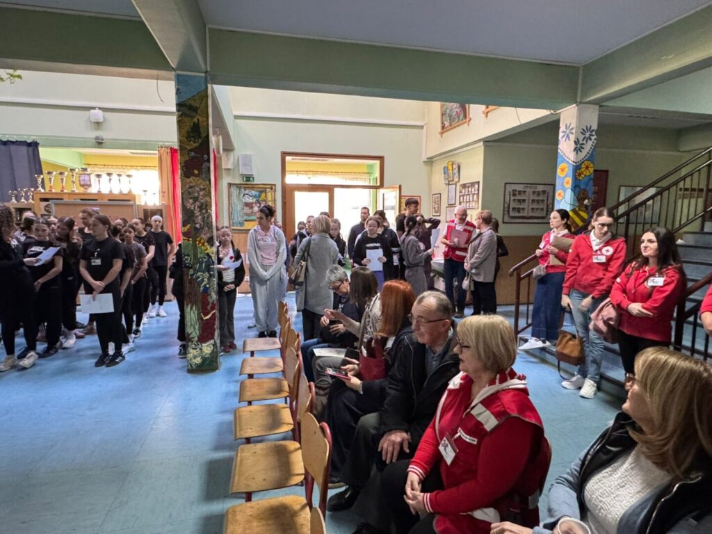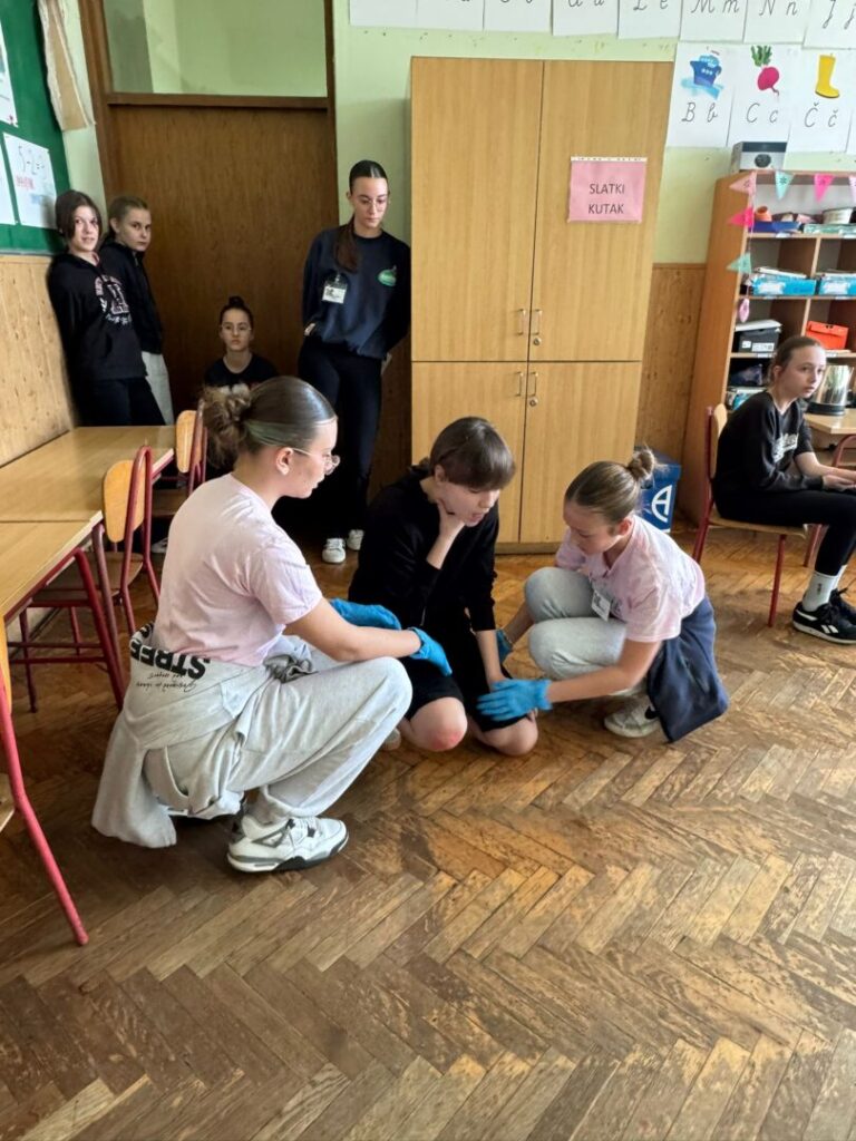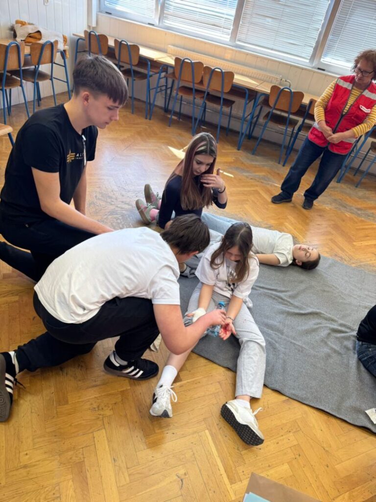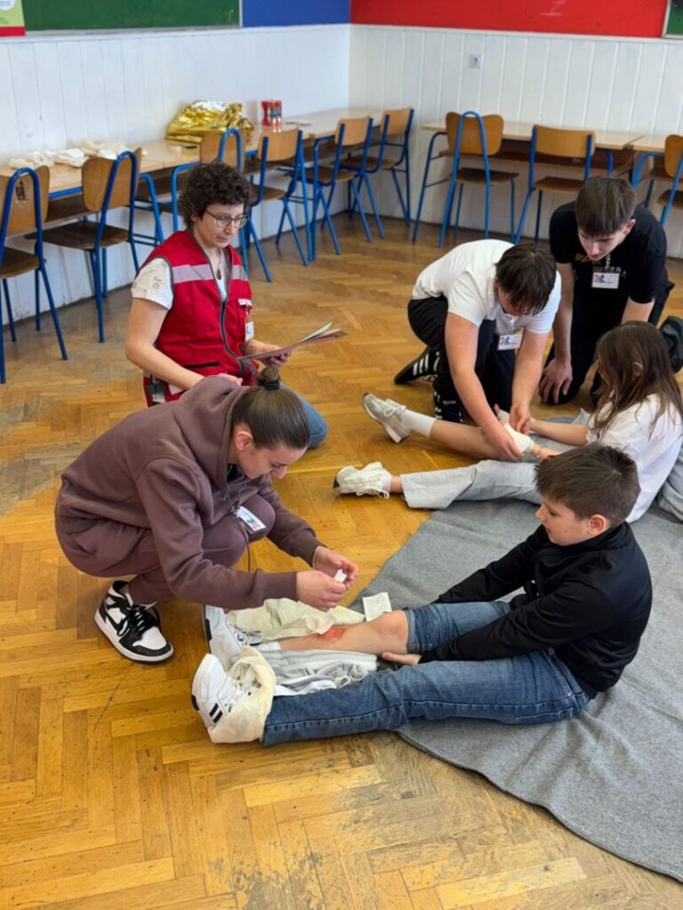 Iznimno nas raduje i velik odaziv naših učenika – oko 30 volontera školskog volonterskog kluba MLin, koji su se, unatoč tome što je natjecanje održano u subotu, rado odazvali i svojim angažmanom značajno doprinijeli uspješnoj organizaciji. Volonteri su sudjelovali u različitim ulogama – kao unesrećeni u simulacijama pružanja prve pomoći, koordinatori, zvonar zadužen za praćenje vremena i signaliziranje početka i završetka zadataka, kao i u brojnim drugim organizacijskim ulogama.