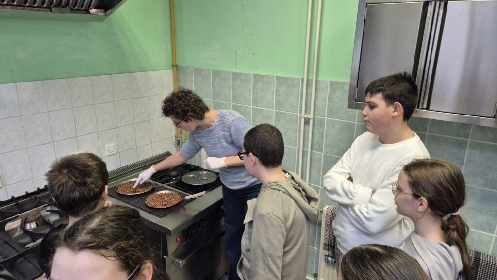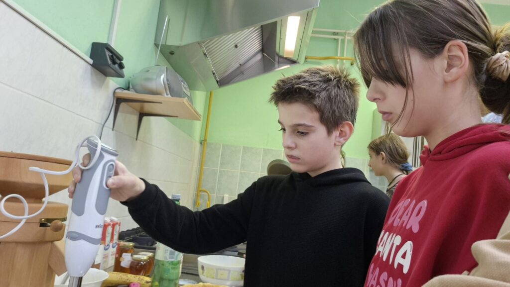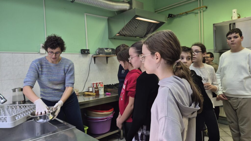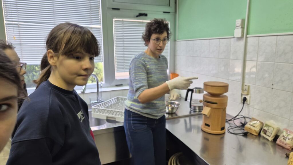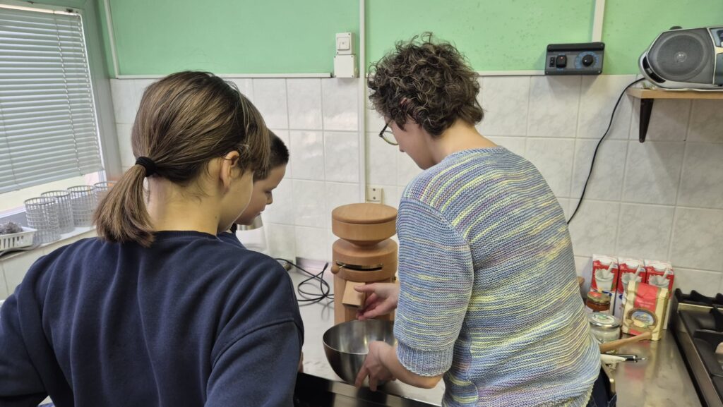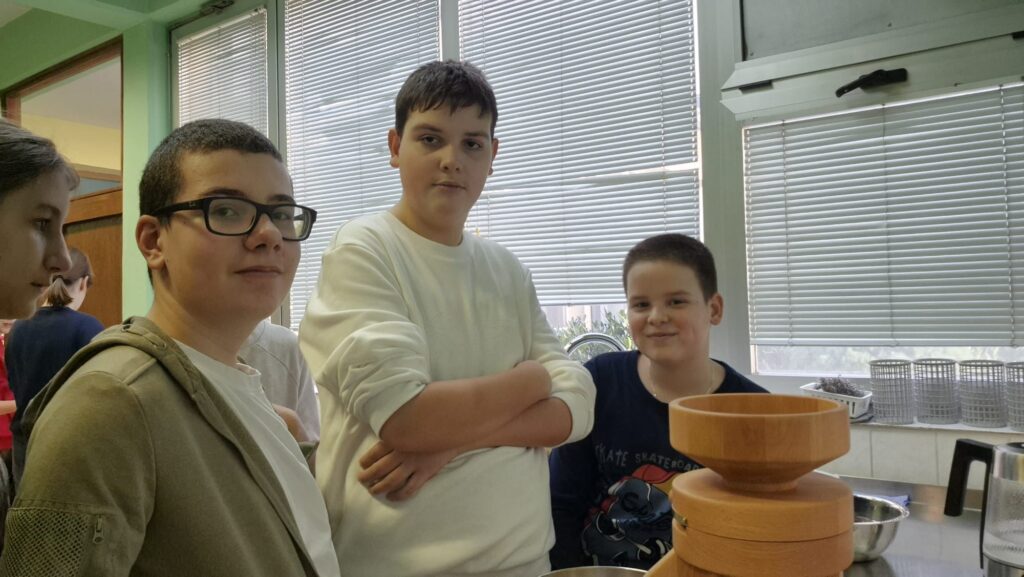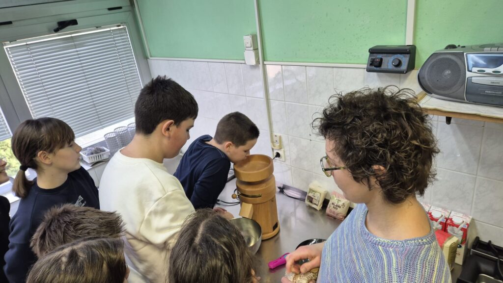 Radionica je započela neuobičajeno i vrlo zanimljivo – učenici su ručno mljevenjem pripremali brašno od riže, slanutka i heljde. Time su stekli uvid u pripremu osnovnih namirnica „od nule“, ali i naučili prepoznati nutritivne razlike između pojedinih vrsta brašna.
