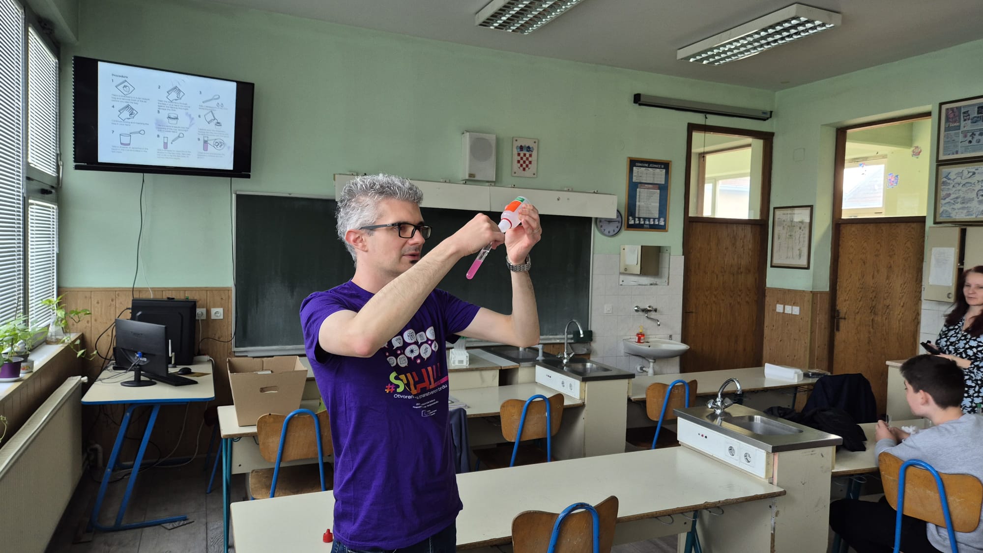 Tijekom cjelodnevnog boravka, dr. sc. Košiček proveo je niz pažljivo osmišljenih aktivnosti prilagođenih uzrastu učenika, potvrđujući pritom visoku razinu stručnosti, ali i iznimne komunikacijske vještine koje ga s razlogom svrstavaju među najuspješnije popularizatore znanosti u Hrvatskoj.