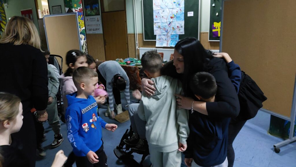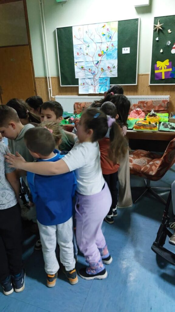 Aktivnost je osmislila učiteljica Josipa Stjepanović, a proveli su je učenici s teškoćama u razvoju iz posebnog odjela – Odgojno-obrazovne skupine (OOS 16–21), uz podršku pomoćnica u nastavi. Kroz zagrljaje i druženje učenici su poslali snažnu poruku o prijateljstvu, prihvaćanju i važnosti međusobne bliskosti.