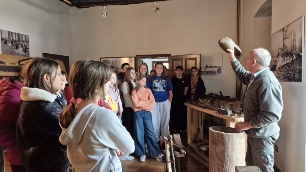 Uz stručno i vrlo zanimljivo vodstvo inženjera šumarstva Antuna Leakovića, učenici su s velikim interesom razgledali bogatu zbirku izložaka koji prikazuju razvoj šumarstva, tradicionalne alate i svakodnevni život šumara kroz povijest. Gospodin Leaković svojom je stručnošću, toplinom i pristupačnošću oduševio učenike, potaknuvši ih na aktivno sudjelovanje i promišljanje o važnosti očuvanja prirode i održivog gospodarenja šumama.