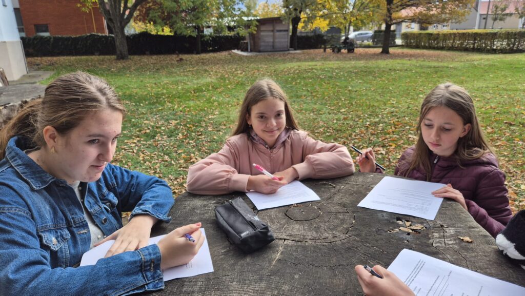 Nakon obilaska muzeja učenici su nastavili s nastavnim aktivnostima na otvorenom. S učiteljicom hrvatskoga jezika Renatom Krsnik pripremali su izlaganja o dojmovima iz posjeta, s učiteljicom kemije Đurđicom Lovrinović proveli su eksperiment mjerenja kiselosti tla, dok su s učiteljem likovne kulture Domagojem Burilovićem izrađivali umjetnička djela u prirodi – tzv. Land art, koristeći lišće, grančice i druge prirodne materijale.