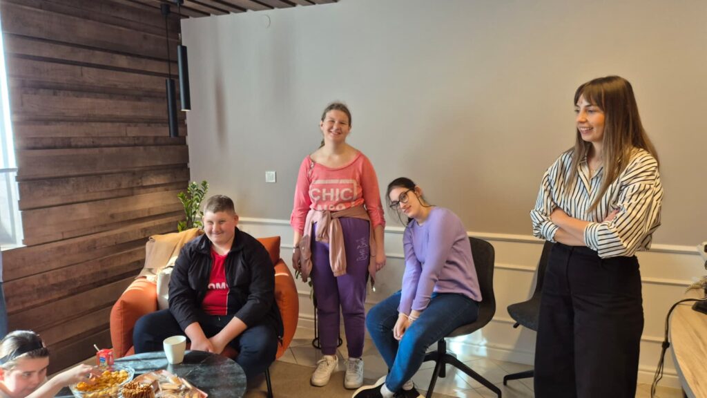 Nakon obilaska, naši domaćini su sve počastili slatkišima, sokovima i kavom, a učenici i pratnja su na kraju dobili i lijepo pripremljene poklone kao uspomenu na posjet.