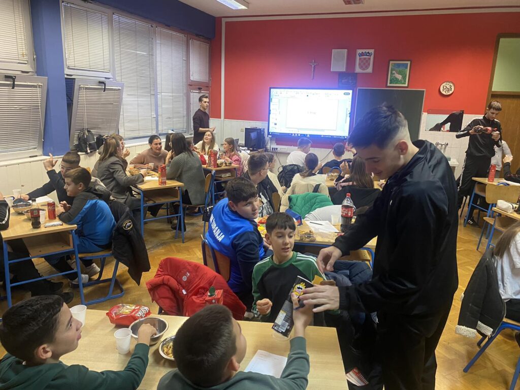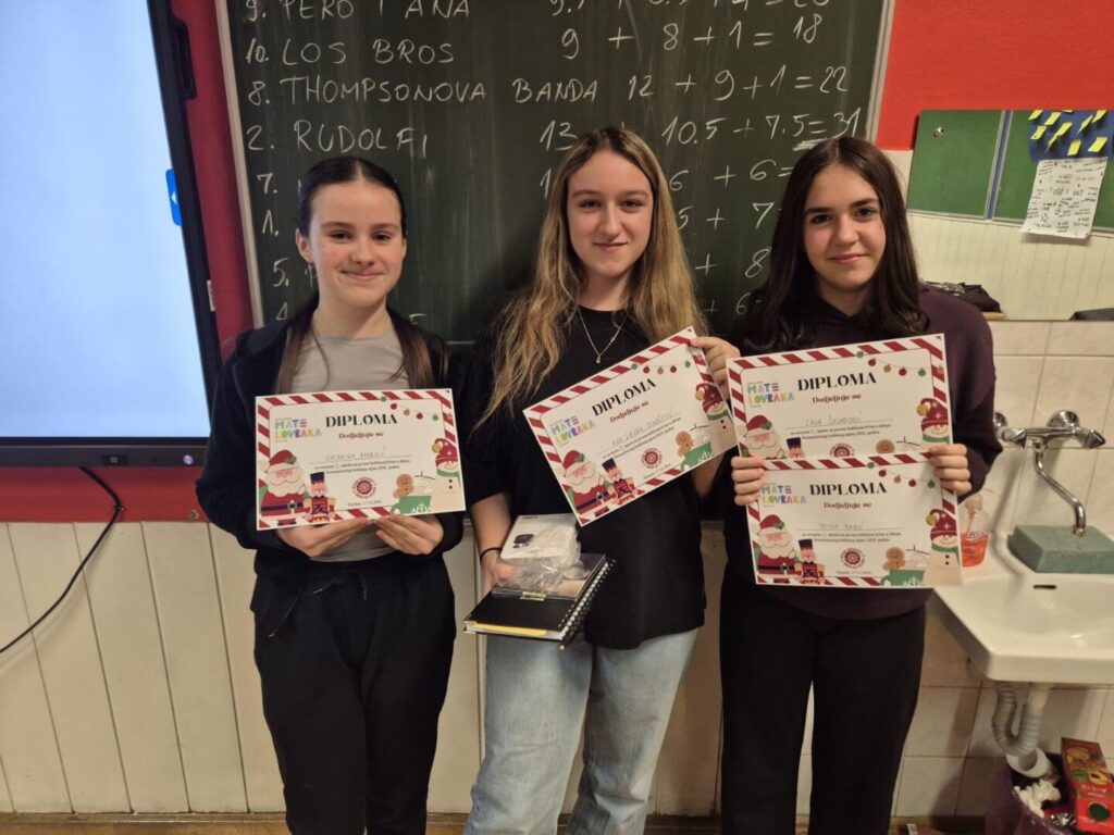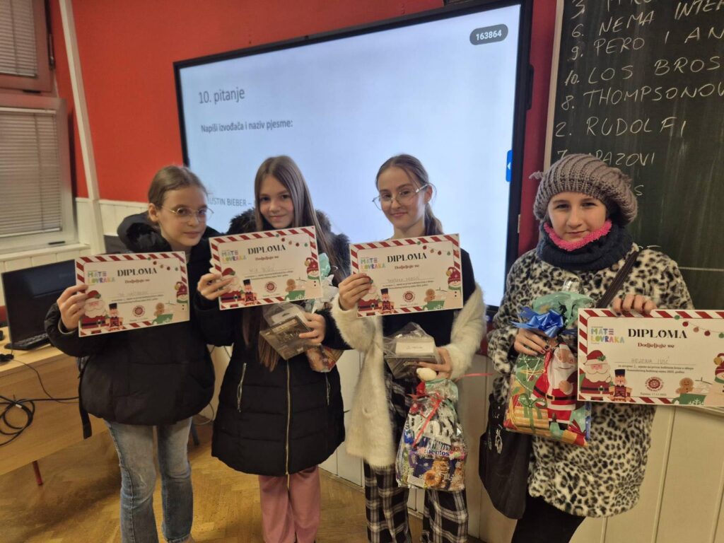 U sklopu humanitarnog božićnog sajma u našoj je školi ove godine po prvi put održan božićni kviz, koji je unio dodatnu dozu veselja, natjecateljskog duha i blagdanskog raspoloženja među učenike i učitelje.