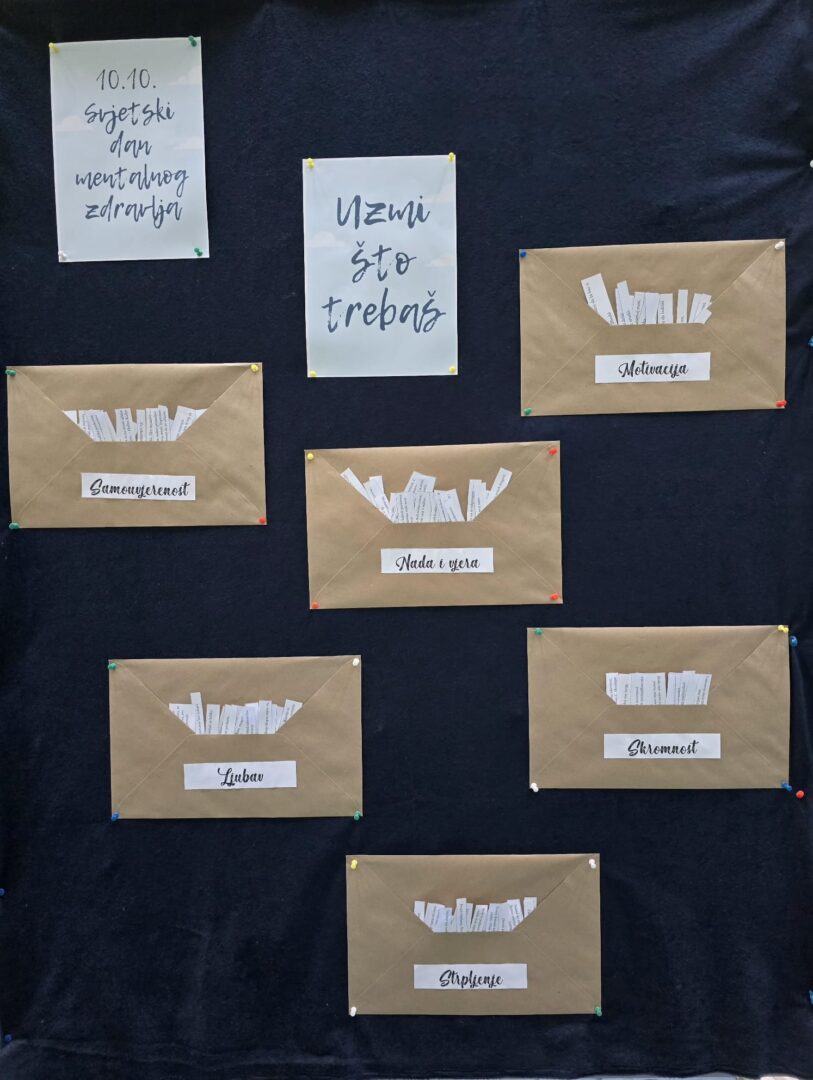 U našoj školi obilježavanje je proteklo u poticajnoj i pozitivnoj atmosferi. U školskoj zgradi postavljen je pano pod nazivom „Uzmi što trebaš“, na kojem su učenici mogli pronaći riječi podrške, motivacije i ohrabrenja. U kuvertama s natpisima Samopouzdanje, Motivacija, Nada i vjera, Ljubav, Skromnost i Strpljenje nalazile su se poruke s toplim mislima i poticajnim rečenicama koje su učenici mogli uzeti i ponijeti sa sobom.