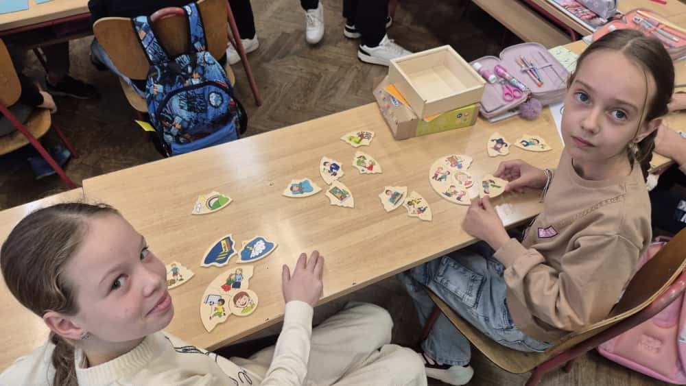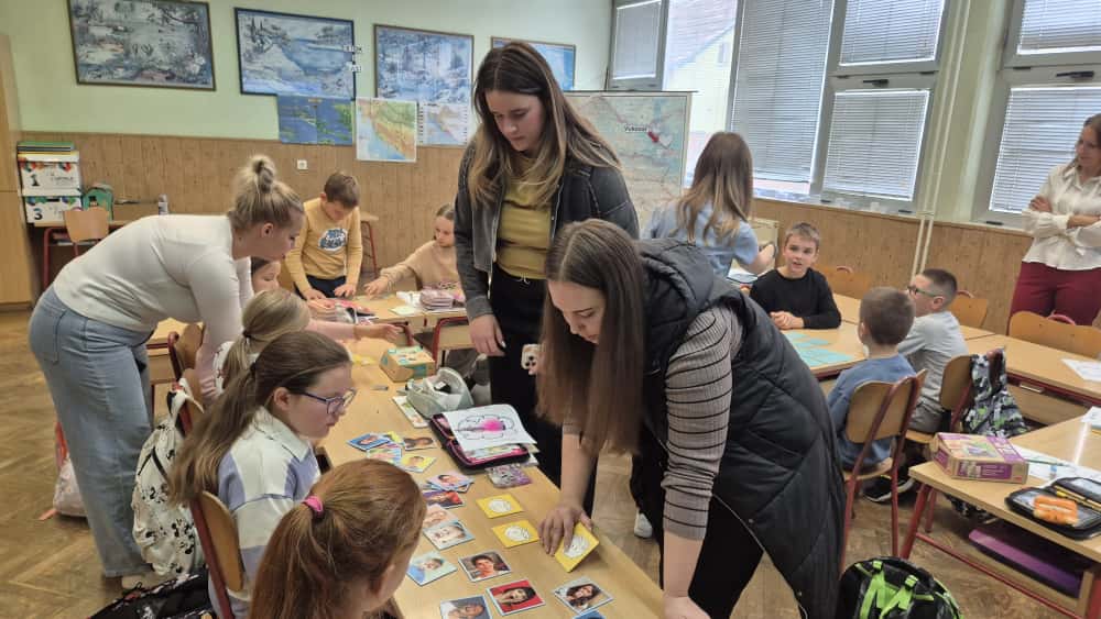 Praktični dio bio je posebno živahan. Djeca su igrala memory s inkluzivnim ilustracijama, slagala puzzle emocija i kroz igru učila prepoznavati osjećaje — svoje i tuđe. Ove aktivnosti stvorile su ugodnu, poticajnu atmosferu u kojoj su učenici međusobno razgovarali, pomagali si i zajednički rješavali zadatke. Upravo taj element zajedništva naglasio je važnu poruku radionice: svatko zaslužuje biti prihvaćen, razumijen i uključen.
