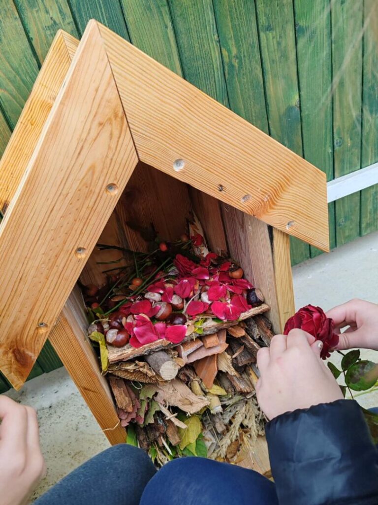 U izradi su pomogli i Mali stolari, koji su izradili drvenu konstrukciju hotela, dok su vrtlari pažljivo punili odjeljke prirodnim materijalima – grančicama, slamom, korom, lišćem i plodovima. Svaki je sloj imao svoju svrhu i doprinos raznolikosti kukaca koji će u hotelu pronaći sigurno sklonište.