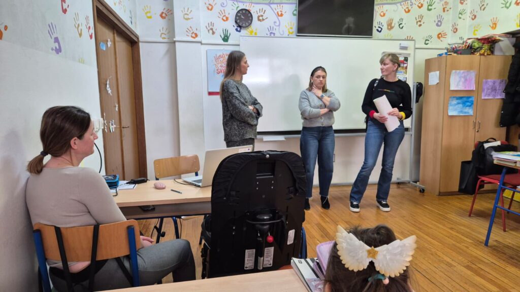 U sklopu realizacije i suradnje, školu je posjetila predstavnica Udruge D.R.V.O., učiteljica Ksenija Dominković, koja je tom prilikom održala razgovor sa stručnom službom škole te obišla školske prostore i posebne odjele. Tijekom posjeta predstavljene su konkretne potrebe odjela, kao i planirani načini namjenskog i odgovornog utroška doniranih sredstava, u skladu s realnim potrebama učenika i škole.